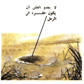 يغازل ذكر القطقاط المطوق انثاء بان يقبع امامها ثم يلف ويدور وهو ينبش الرمال برجليه.