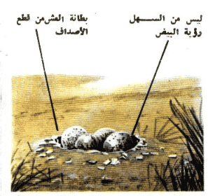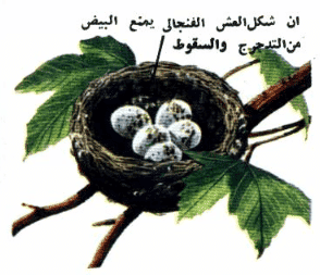 ان بعض الطيور تبني عشوشها دائما على الأرض، والبعض الاخر يبنيها دائما على الأشجار أو الشجيرات، والعشوش التي تبنى على الأرض أقل أمانا من تلك التي تبنى فوق الشجر، والبيض الذي تضعه الطيور في العشوش الأرضية يكون كله مزودا بألوان خاصة تجعل رؤيته شيئا صعبا.