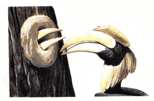 تقوم انثى الطائر النساف بالتعشيش في شجرة مجوفة ويتم اغلاق فجوة الشجرة بالطمى مع ترك فرجة صغيرة تسمح بابراز منقارها، ويقوم الذكر بجلب الطمى للأنثى ، انه يبتلع الطمى أولا ثم يتقيؤه ويعطيه لها، وتقوم الأنثى بتحطيم الطمى والخروج من العش عندما تصبح أفراخها قادرة على الطيران.