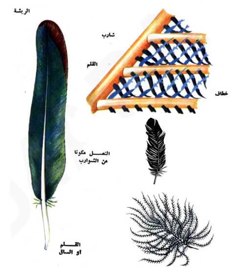 والريش الناعم الذي يغطي جسم الأفراخ (الكتاكيت) يسمى الزغب، ولا توجد خطاطيف في الريش الزغب فلا تتماسك شواربه ، وللطيور البالغة كساء تحتى من الزغب يوفر لها الدف، وتتركب الريشة من قلم ونصل، والقلم هو الدعامة المركزية للريشة، ويتركب النصل من صفوف من الشوارب منتظمة في صفوف متلاصقة على جانبي القلم، وتتشارك الشوارب بخطاطيف بحيث يكون للريشة سطح أملس .
